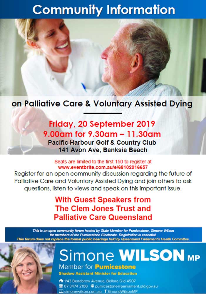 Community Information Forum on Palliative Care & Voluntary Assisted Dying Friday September 20