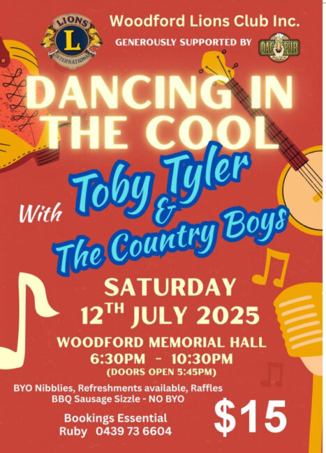 Dancing In The Cool July 12 Featuring Toby Tyler & The Country Boys at the Woodford Memorial Hall