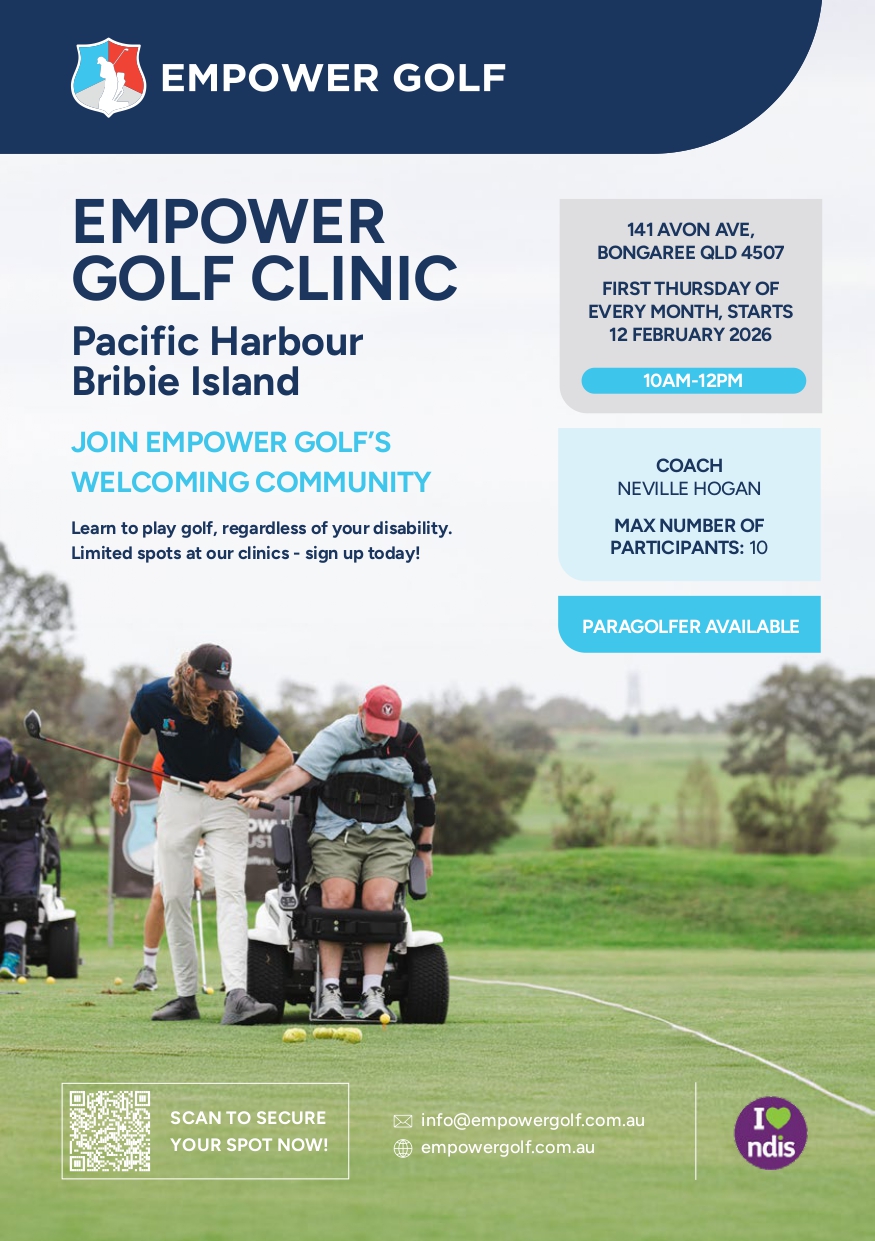We are excited to invite the disabled community of the City of Moreton Bay to attend our upcoming FREE March “Come & Try Golf Clinic”. No prior experience in Golf is needed – just come along and give it a try at the following location: