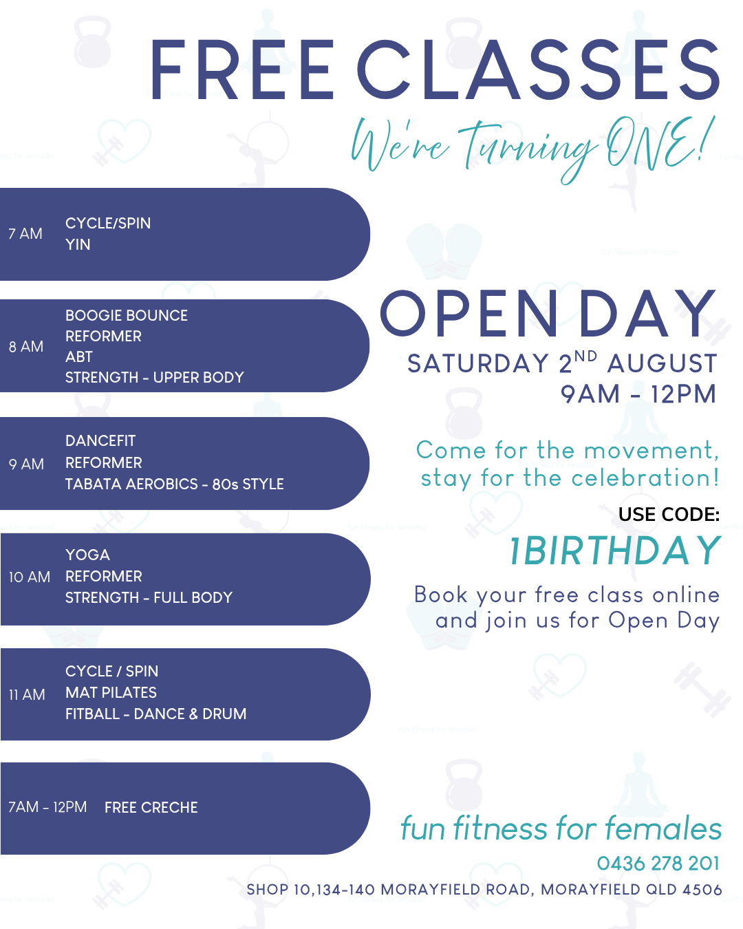 We are delighted to invite you to cover a special community event celebrating the 1st birthday of Fun Fitness 4 Females, a local fitness studio dedicated to empowering women through health and wellness.