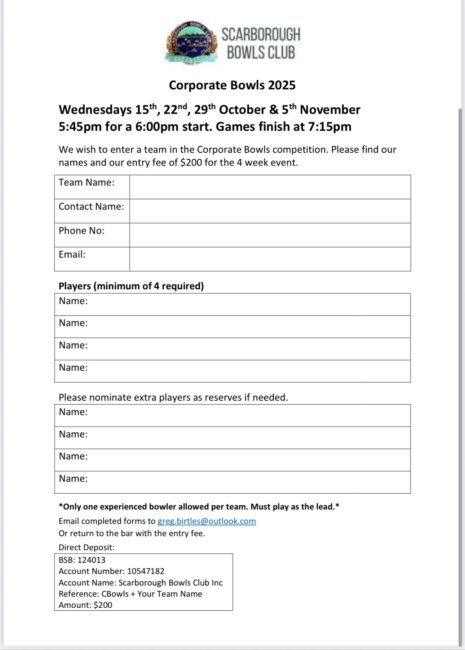 Below print this off and use this as your entry for the Corporate Bowls Calendar 2025 series from  October