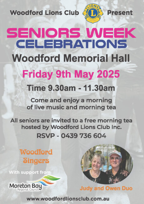 Seniors Week Celebrations, Morning Tea – Hosted by Woodford Lions Club Friday 9th May
