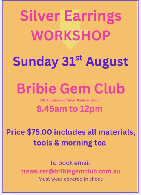 at the Bribie Island Gem & Fossicking Club – This is your chance to learn now work or create silver earrings.