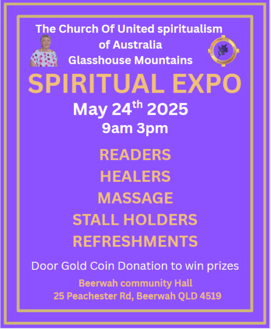 The Church of United Spiritualism of Australia comes to the Glasshouse Mountains will host its first Spiritual Expo for 2025.
