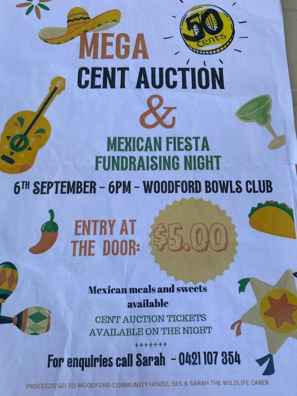 Woodford Bowls Club 12 Webb Lane, Woodford, Queensland, AustraliaBig Fundraiser Saturday Sept 6 at the Woodford Bowls club We are doing a Fundraiser at the Woodford Bowls club on Saturday Sept 6 .Mega Cent Auction and Mexican Fiesta night. Entry $5 Over 250 Prizes. Cent auction tickets Available on the night. Also Mexican meals sweets Tea and Coffee. Funds raised going to…