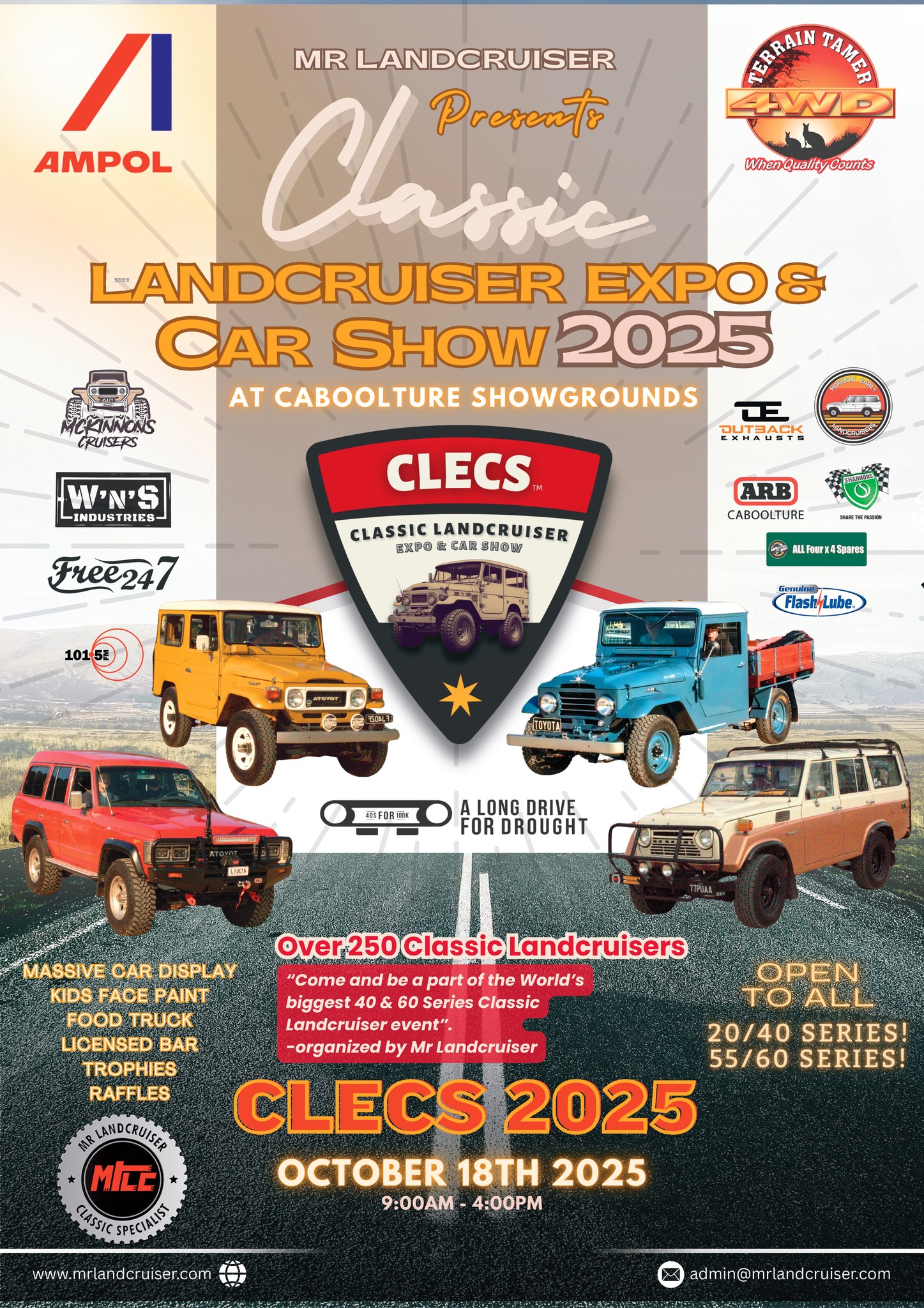 The Classic Landcruiser Expo & Car Show October 18 October 18th 2025 – Caboolture Showgrounds CLECS is back on October 18th, 2025! Follow our Facebook page for the latest info. CLECS has always been more than just a car show—it’s a platform committed to community and cause. We are proud to be aligned with A Long…